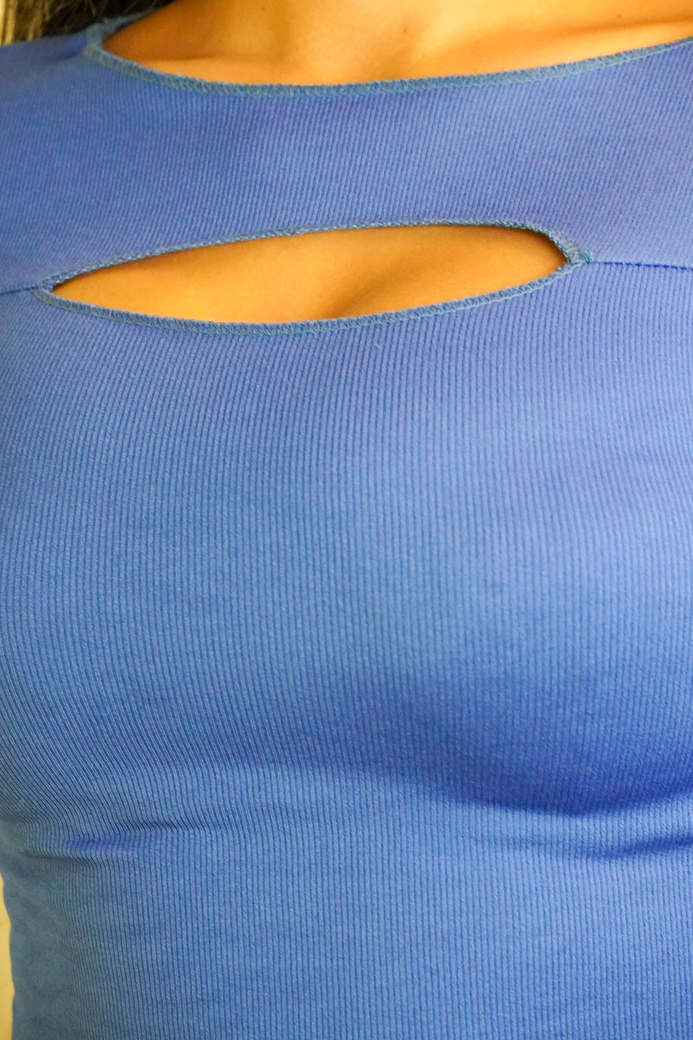 Mavi Beyaz Pencere Detaylı Detaylı Crop Örme Bluz