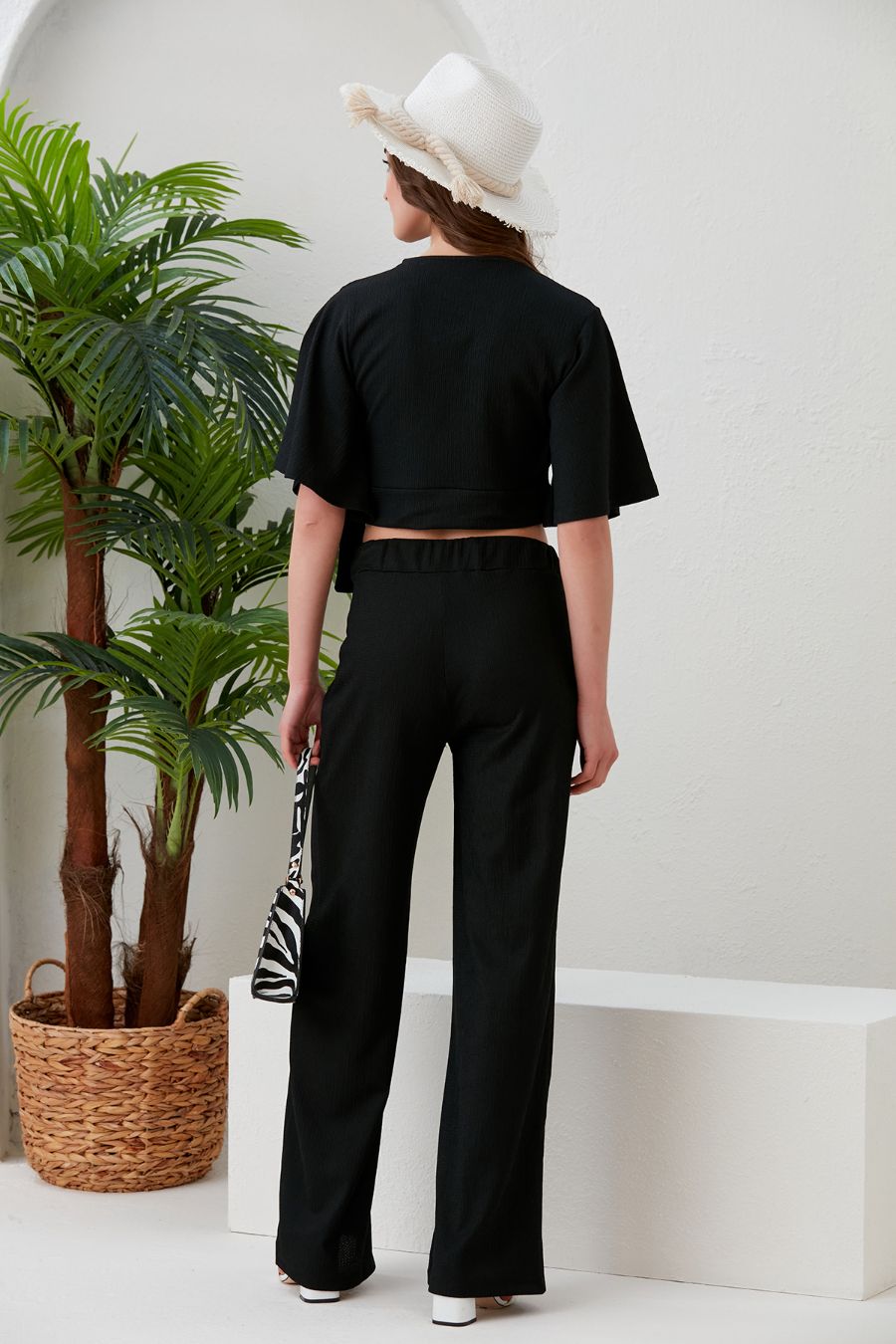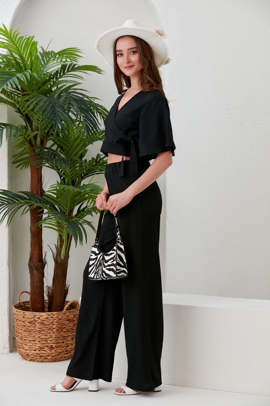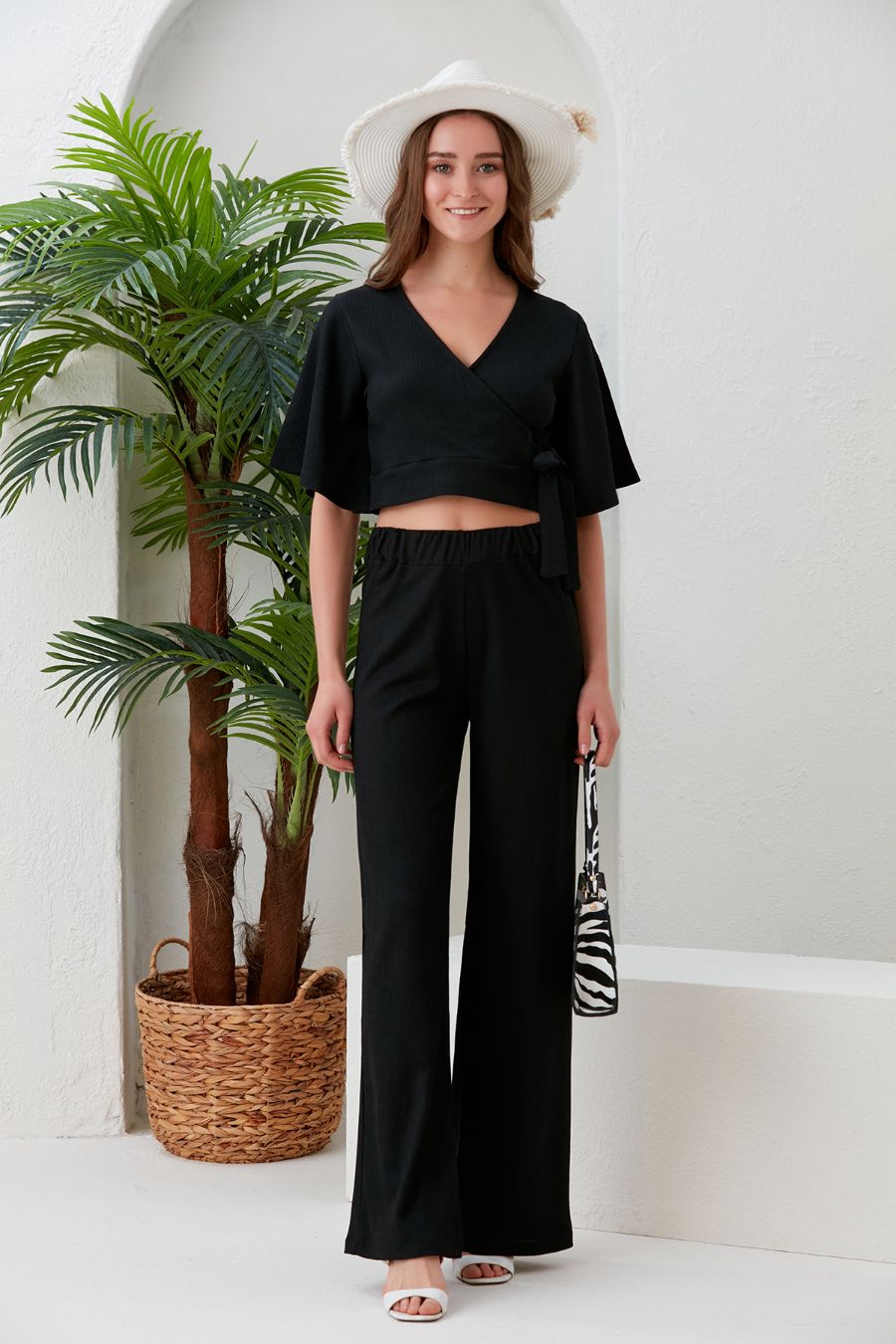 Siyah Yandan Bağlamalı Bürümcük Alt-üst Takım
