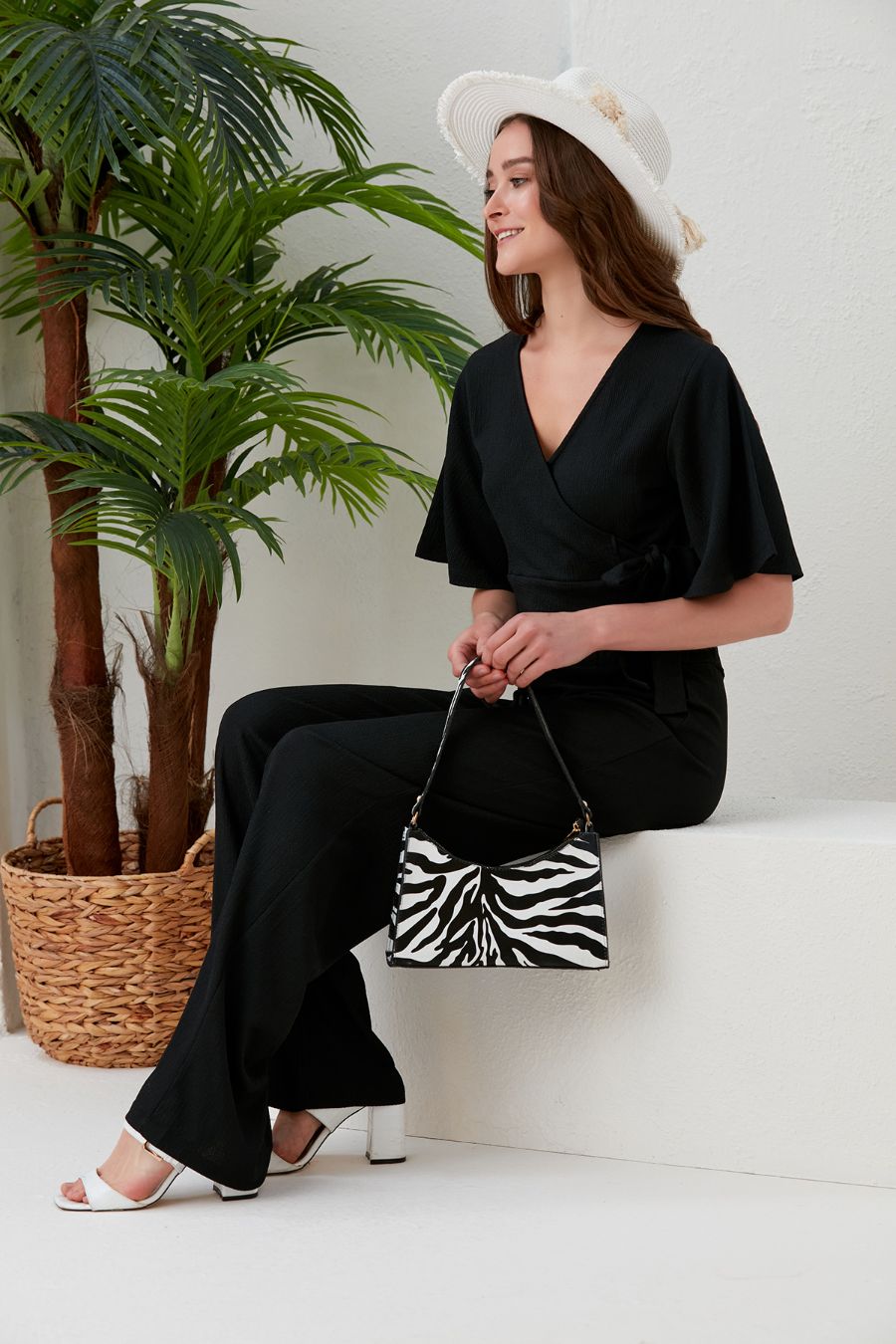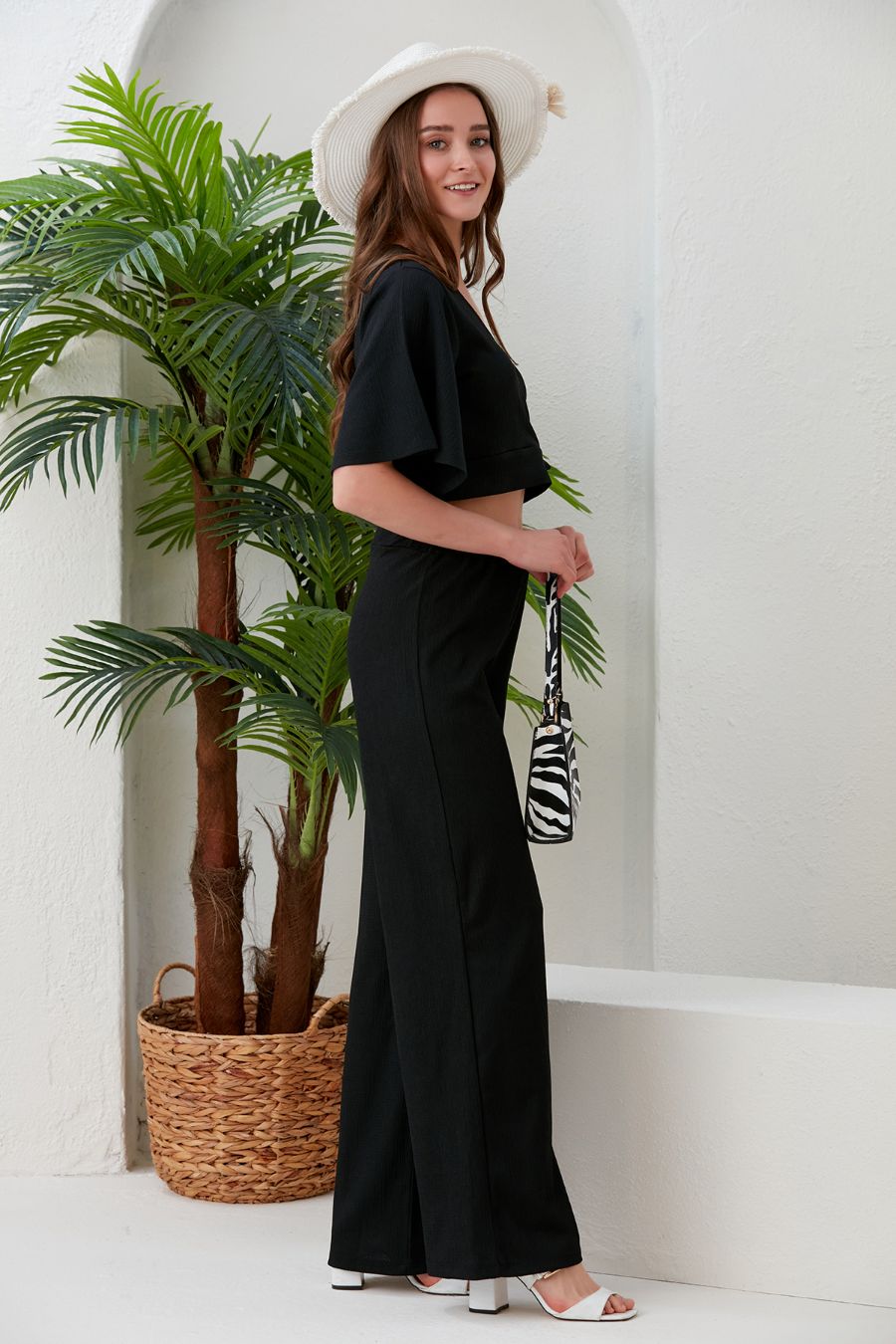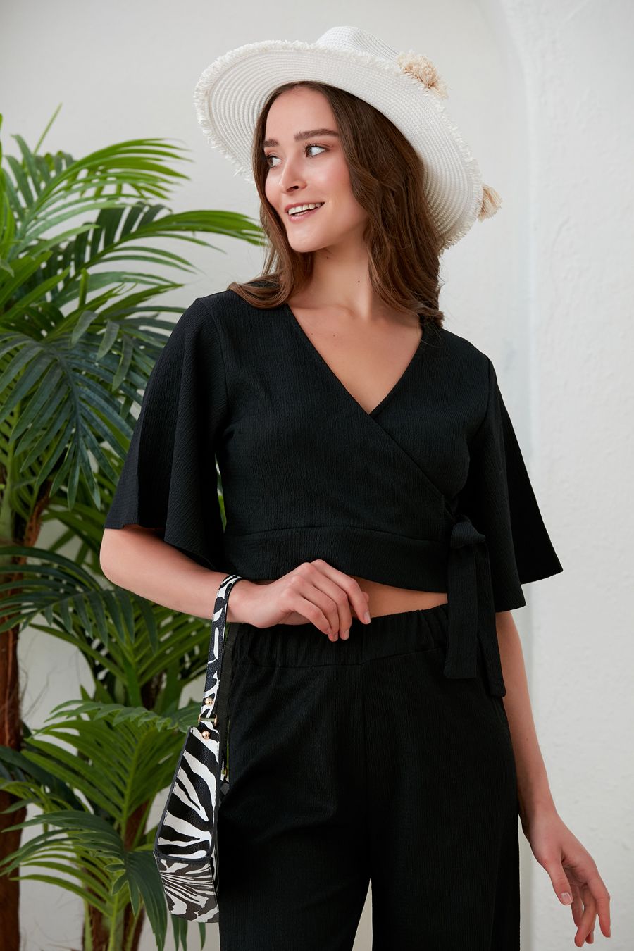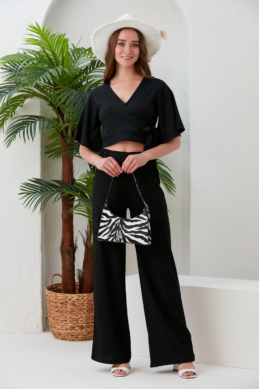 Siyah Yandan Bağlamalı Bürümcük Alt-üst Takım